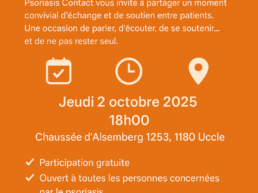 La participation est gratuite et la rencontre est ouverte à tous. Que vous soyez directement touché par le psoriasis ou que vous accompagniez un proche, vous êtes les bienvenus.